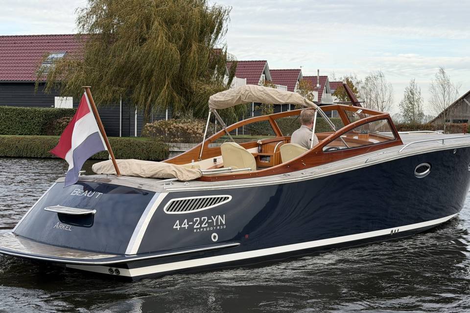 Stap aan boord van deze schitterende Rapsody R30 uit 2008 en ervaar de unieke combinatie van klassieke elegantie en modern vaarcomfort. Deze snelvarende beauty is met haar krachtige Volvo Penta D4 (260 pk) dieselmotor goed voor een topsnelheid van 30 knopen, waardoor elke vaartocht een genot is — of u nu rustig over de Friese meren glijdt of sportief over open water vaart.