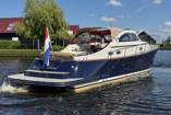 Dankzij de krachtige dubbele Volvo Penta D4-motoren van elk 260 pk (samen goed voor een topsnelheid van 34 knopen) en het sportieve V-rompontwerp met kevlarversterking, biedt deze Rapsody een uitzonderlijk stabiele en snelle vaart. Het luxe interieur met modern houtlookdesign, wit gestoffeerde kussens en praktische indeling nodigt uit tot ontspannen cruisen met familie of vrienden. De royale open kuip beschikt over een rondzit, dinette en kombuis en is eenvoudig af te dekken met een uitritsbare cabrio-tent.  in de kajuit bevint zich een zeer royale eigenaarshut met een comfortabel frans bed, een gasten hut en de natte cel met douche en elektrisch toilet.