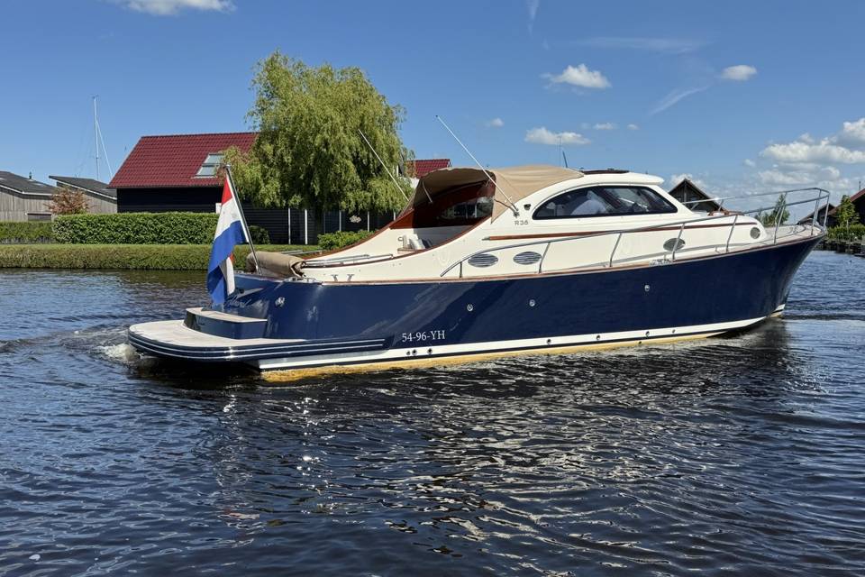 Wat deze R36 écht bijzonder maakt, is de grondige refit en het uitstekende onderhoud. In 2023 is het houtwerk in de kuip volledig vernieuwd, de romp professioneel geschilderd, het exterieurhout opnieuw gelakt, zijn de kussensets van de kuip en dinette vervangen en zijn vele elektronische onderdelen preventief vernieuwd. Hierdoor verkeert de boot niet alleen technisch in topconditie, maar oogt hij ook als nieuw.