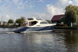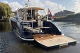 Aan dek ervaart u een zee van ruimte. De ruime kuip met teakhouten vloer, comfortabele mahoniehouten banken en een uitklapbaar zwemplateau maken elk moment op het water bijzonder. Dankzij de koelkast, de opbergruimte en de afsluitbare tent geniet u hier in alle seizoenen van comfort en gezelligheid.