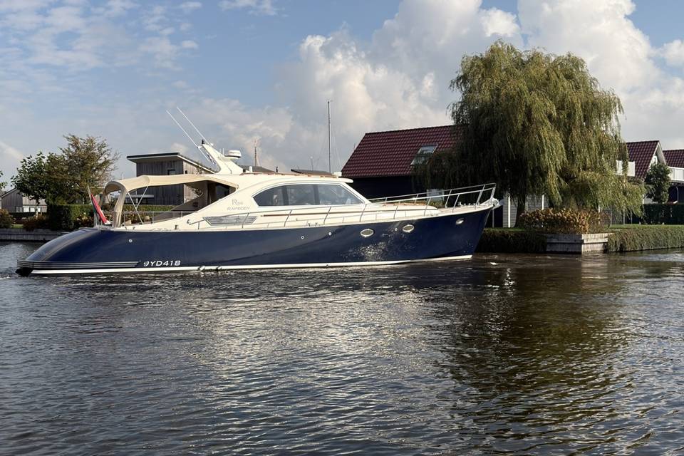 De Rapsody R55 ‘Maas’ ligt in Heeg en kan desgewenst met een 23 meter schiphuis worden overgenomen. Dit is uw kans om eigenaar te worden van een exclusief jacht dat luxe, prestaties en elegantie op unieke wijze combineert.