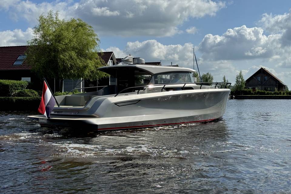 Deze prachtige Venegy V37 'Amazing Grace' uit 2020 bevindt zich in absolute topstaat. Dit schip kenmerkt zich door haar aluminium romp met elegante en strakke lijnenspel, 360 graden panoramaraam en stoere kleurstelling. Het onderwaterschip is speciaal ontworpen door Petestep waardoor de boot meer rendement uit de motoren haalt, minder brandstof verbruikt, een zeer stabiele ligging en geen spray heeft. De boot wordt voortgestuwd door twee zuinige Volvo Penta motoren van ieder 340 pk met slechts 350 draaiuren. Hiermee behaalt de boot een topsnelheid van 38 knopen. Dit schip is ontwikkeld met een gepatenteerd Petestep onderwaterschip waardoor de boot meer lift krijgt en 20% minder brandstof verbruikt en sneller in plané komt. Het schip is te koop voor €560.000 exclusief BTW.