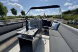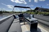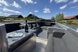 Het strakke, moderne interieur met grijze stoffering en licht design geeft een luxe uitstraling. De aanwezigheid van een boegschroef, Bluetooth audio, een bimini, buitenkussens en een zelflozende kuip maken deze tender compleet en gebruiksvriendelijk in alle weersomstandigheden.